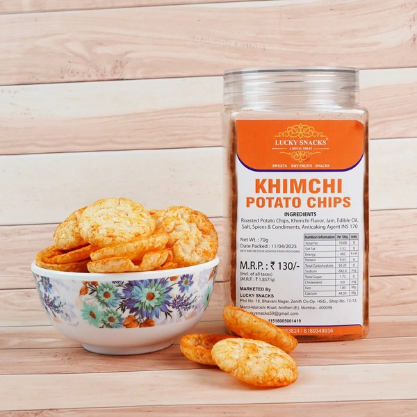 Bold, spicy, and irresistibly tangy – Khimchi Potato Chips bring the fiery flavor of traditional Korean kimchi to your favorite snack. Each crisp is thinly sliced, perfectly fried, and generously seasoned with a zesty blend of chili, garlic, and fermented goodness. Crunch into a wave of umami heat that keeps you coming back for more. Ideal for adventurous snackers and lovers of bold flavors.